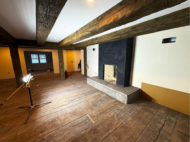 Finally, we poured a brand‑new concrete slab. Once it reached the perfect hardness, we stamped and colored it to mimic natural wood grain. The result is a floor that delivers the warmth of wood with the durability of concrete the best of both worlds.
